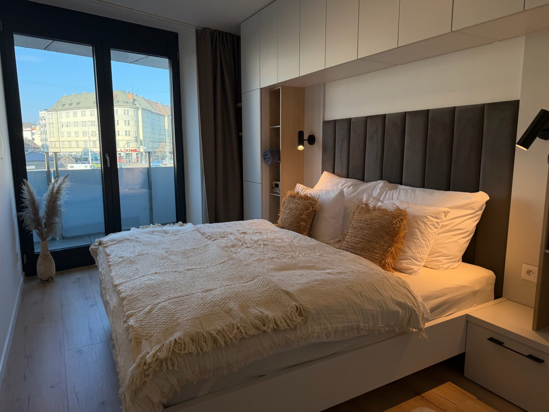 Stmívací světla, zatemňovací závěsy a mnoho úložného prostoru.