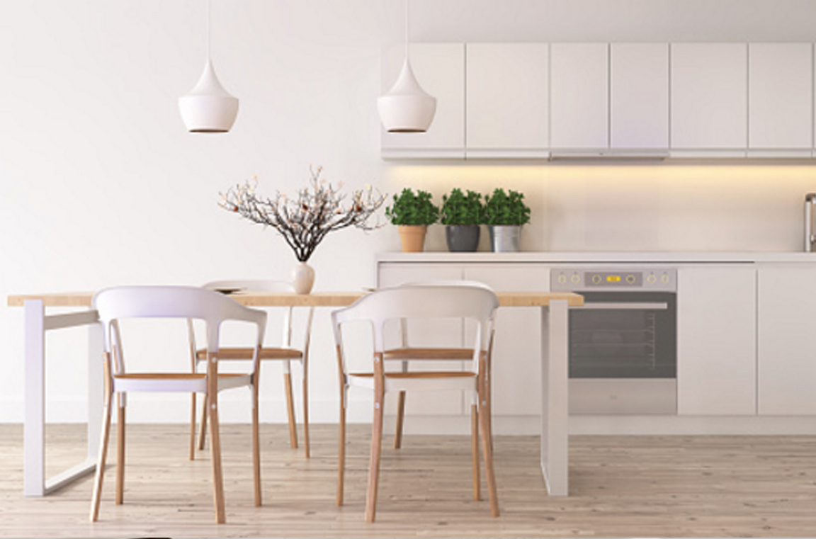 Obývací pokoj s kuchyní a jídelním koutem je příjemným místem jak k práci, tak k odpočinku. Třímístná rozkládací sedačka se hodí i pro příležitostné návštěvy.